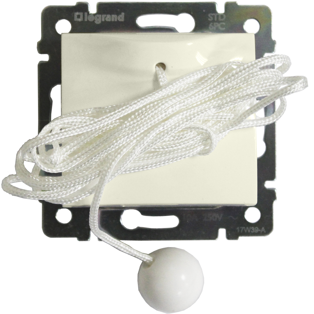 Механизм переключателя одноклавишный кнопочный БЕЗ ФИКСАЦИИ, со шнуром 1,5 м, скрытой проводки бежевый, кремовый (сл. кость)
