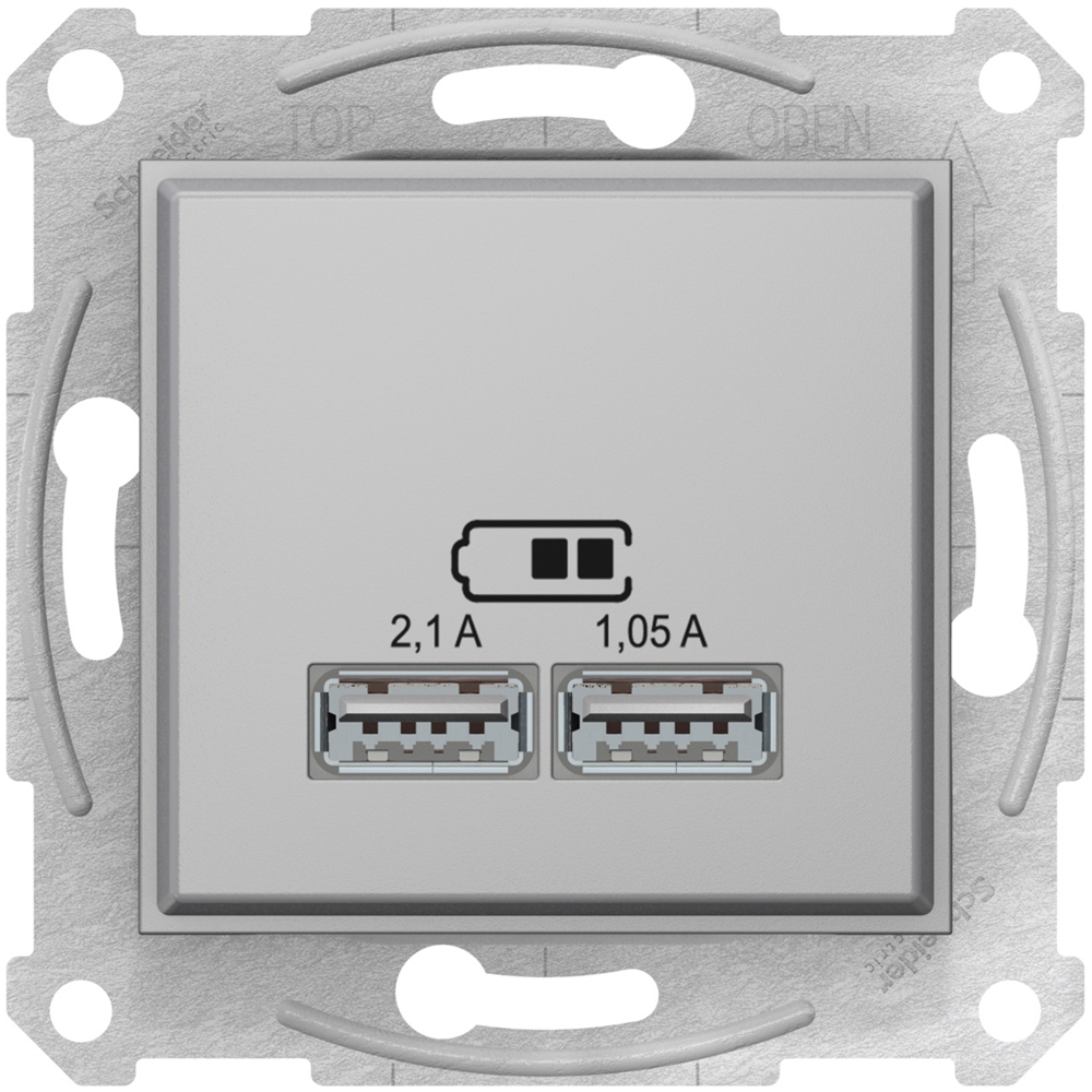 Механизм USB SEDNA зарядного устройства 2.1А (2x1.05А) алюминий