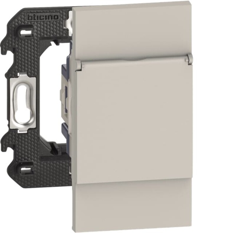 Розетка электрическая 2К+З 16А с защитной крышкой, винтовые клеммы 2 модуля. Цвет Песочный. Bticino серия Living Now. K4702+KM4141+KM04P