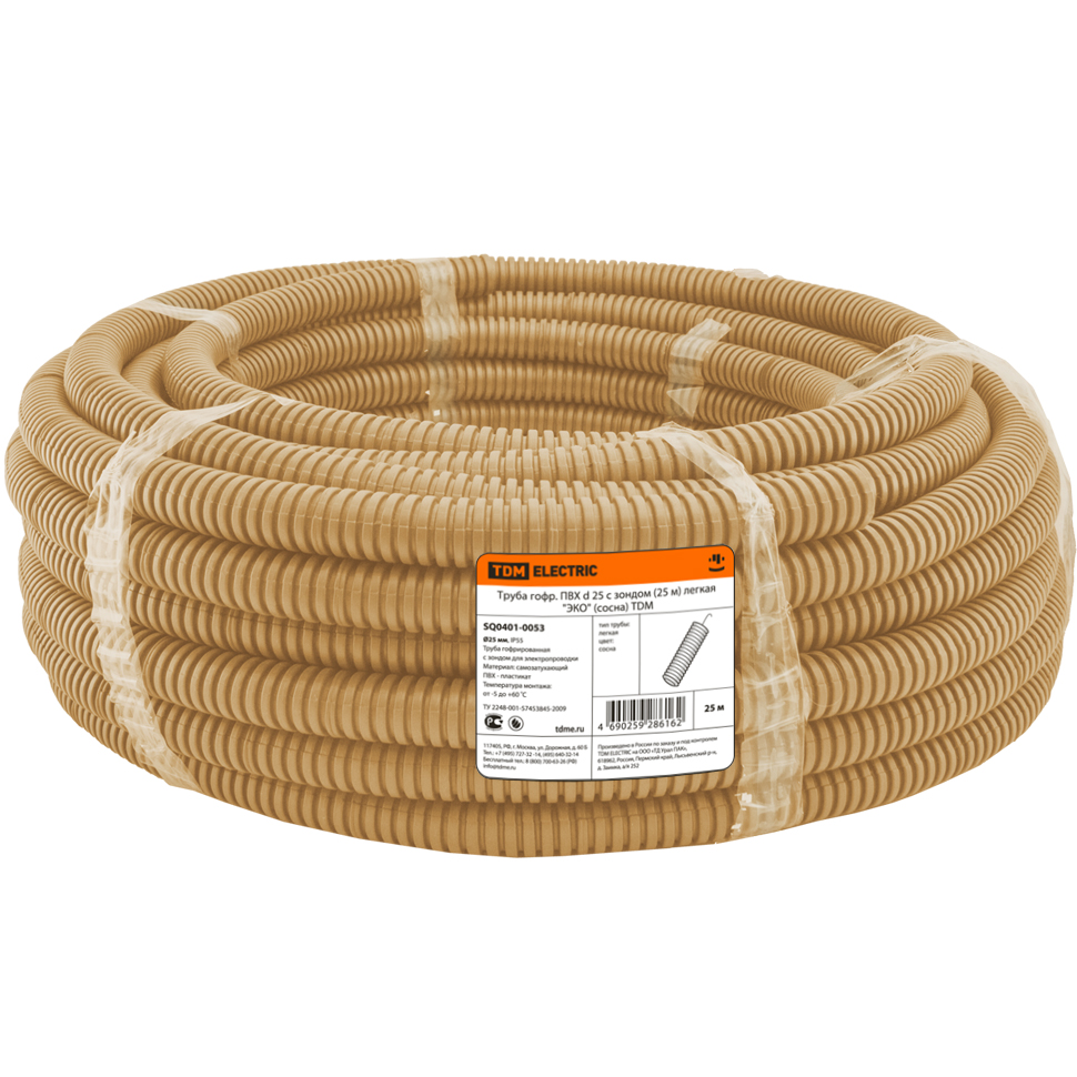 Труба гофрированная ПВХ d 20 с зондом (25 м) легкая "ЭКО" (сосна) TDM
