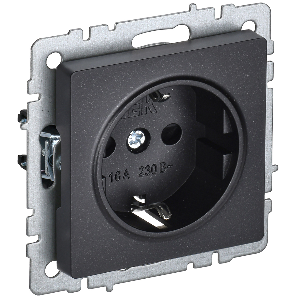Розетка "евро" BRITE электрическая с заземлением с/з немецкий стандарт чёрная 16A с защитными шторками