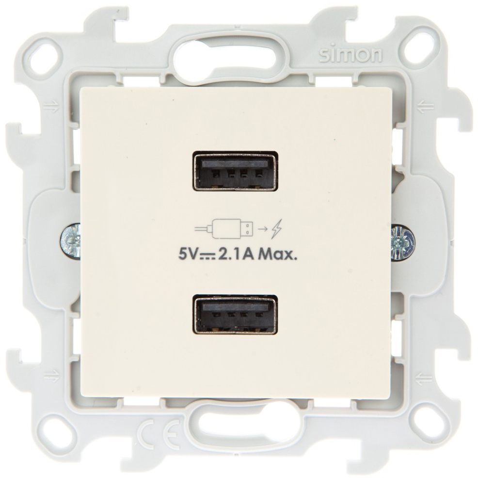 Simon 24 Слоновая кость Зарядное устройство 2хUSB 2,4A