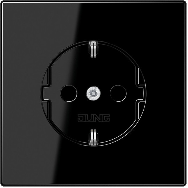 Штепсельная розетка SCHUKO одинарная, с заземлением, с шторками, 16A, 250В (механизм + накладка, без рамки). Серия LS990 Материал- дуропласт Цвет- черный