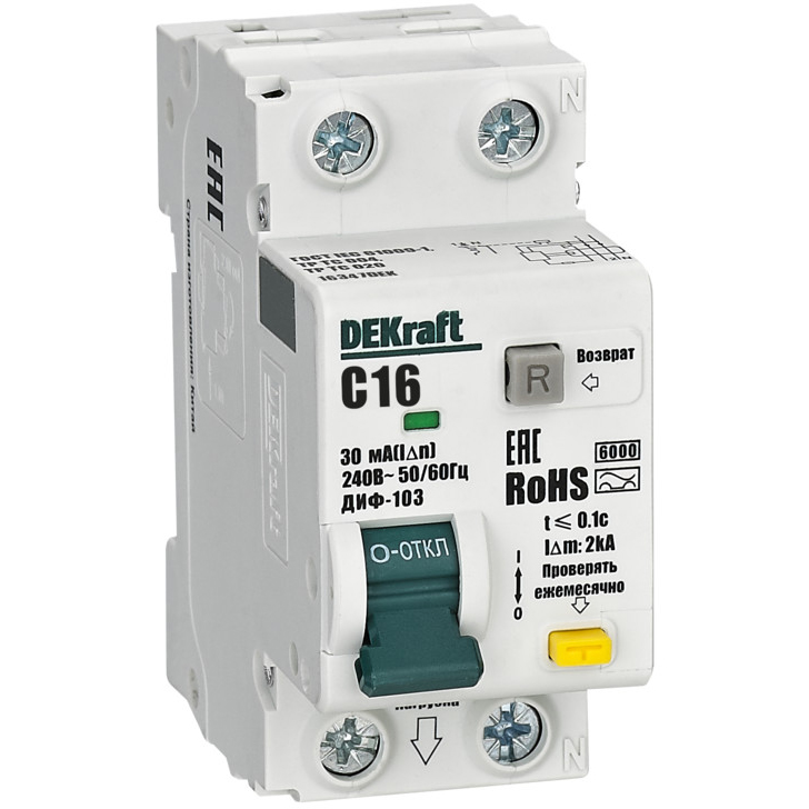 Выключатель автоматический дифференциальный 1P+N 16А 30мА A х-ка C ДИФ-103 6кА