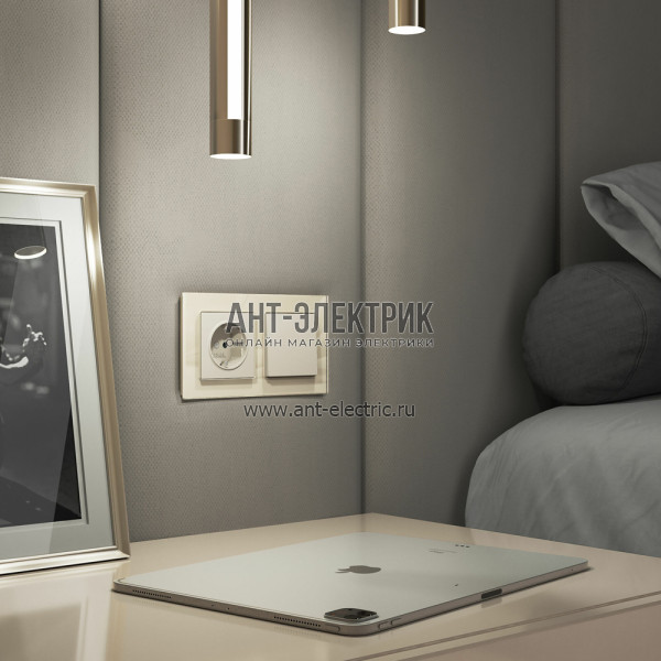 Выключатель одноклавишный проходной (айвори матовый) a059278