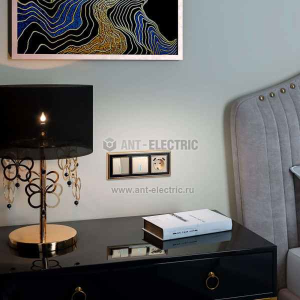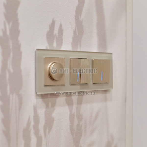 Переключатель 1-клавишный проходной с подсветкой (Шампань рифленый) Артикул: