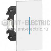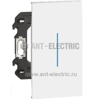 Выключатель/переключатель одноклавишный на 2 направления(проходной) с подсветкой синего цвета 10А автоматические клеммы 2 модуля. Цвет Белый. Bticino серия Living Now. K4702+K4003M2A+H4743/230B+KW01M2