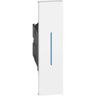 Выключатель/переключатель одноклавишный на 2 направления(проходной) с подсветкой синего цвета 10А винтовые клеммы 1 модуль. Цвет Белый. Bticino серия Living Now. K4003+H4743/230B+KW01