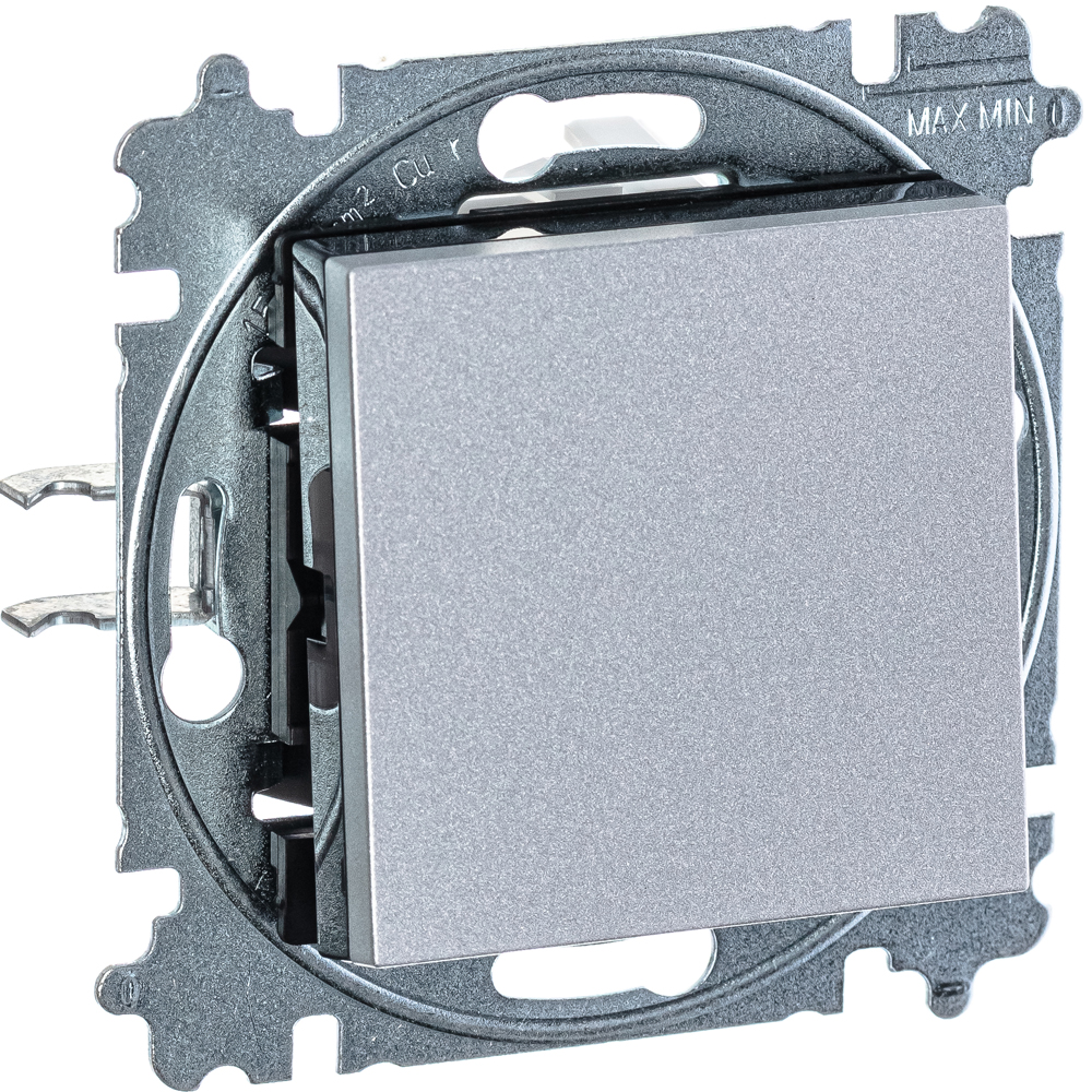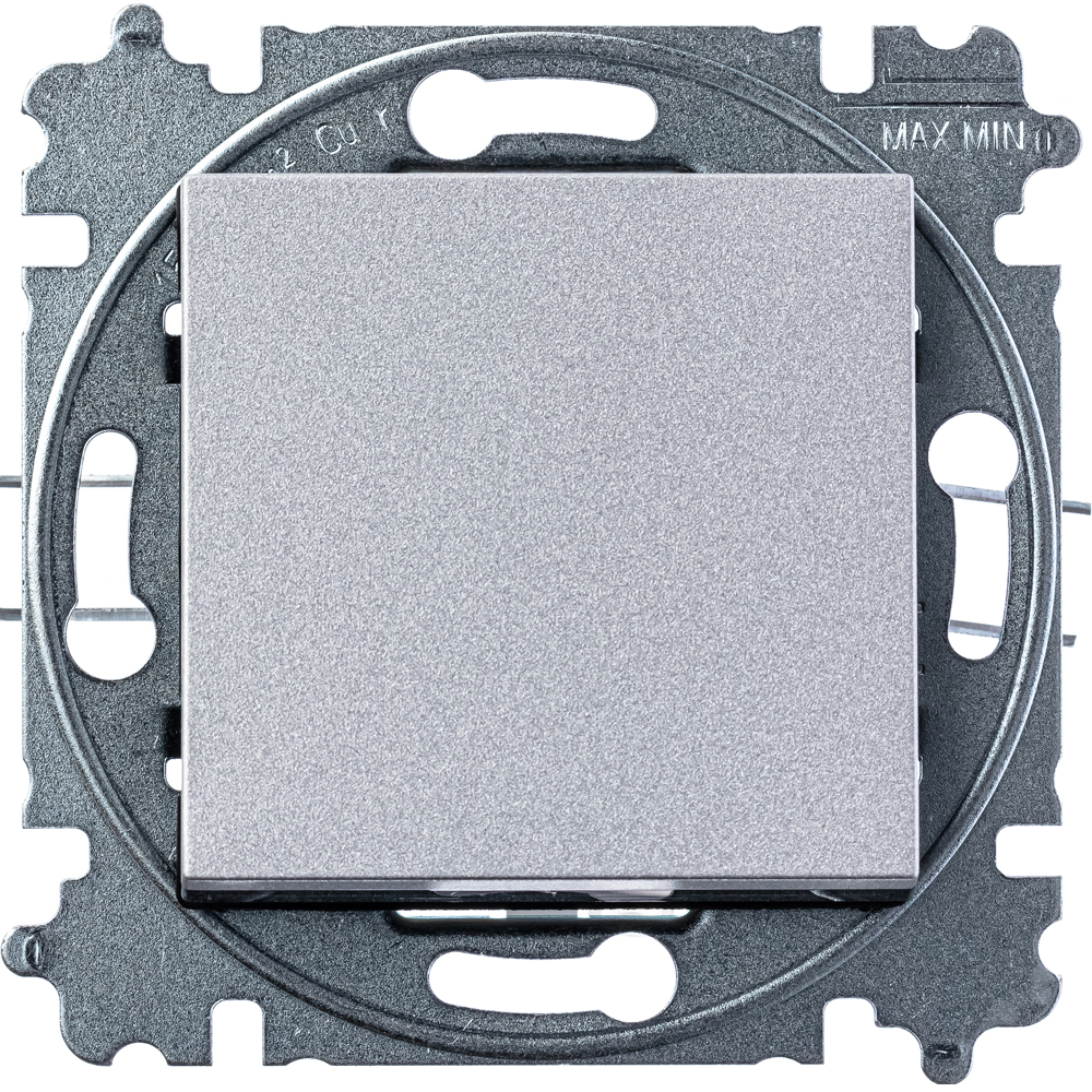 Перекрестный промежуточный (перекрёстный) переключатель (выключатель) EPJ Levit 1-клавишный одноклавишный на (с) 3 и более мест, серебряного цвета схема 7 10АХ