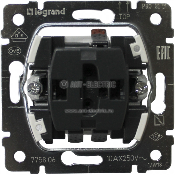 Механизм переключателя на 2 направления скрытой проводки Номинальный ток: 10 А. Напряжение: 250 В, 50Гц. Тип зажима: плоскопружинный. Сечения провода: до 2,5 мм?.