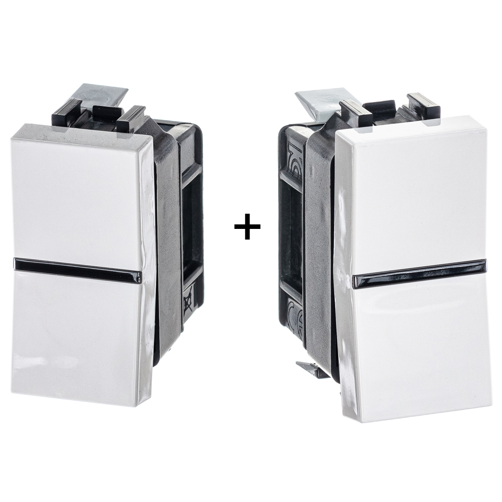 Механизм 2-клавишного двухклавишного переключателя с клавишей, 1-модульный, серия Zenit, цвет альпийский белый
