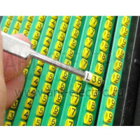 Каждая планка состоит из 24 маркировочных элементов с предварительно напечатанными на них обозначениями или без них. Все элементы имеют одинаковый размер и наклеены на пластмассовую основу.