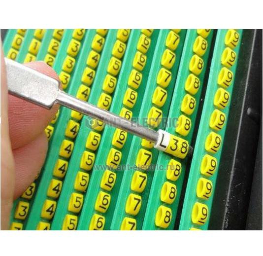 Каждая планка состоит из 24 маркировочных элементов с предварительно напечатанными на них обозначениями или без них. Все элементы имеют одинаковый размер и наклеены на пластмассовую основу.