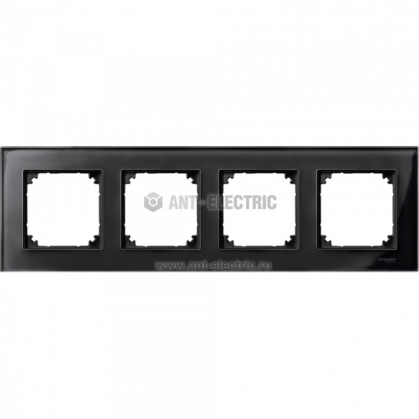 Рамка Мертен 4-ая (четверная) четырехместная четырехпостовая чёрного цвета горизонтальная стеклянная