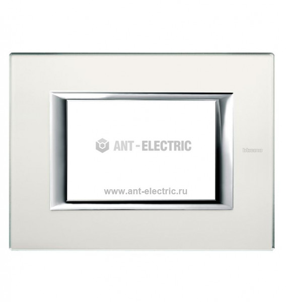 Рамка Axolute трехместная прямоугольная без перегородок, материал - стекло, хромированное внутреннее обрамление.