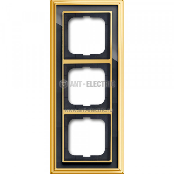 Рамка BJE Династия 3 поста 3-ая 3-м Полированная латунь/Черное стекло
