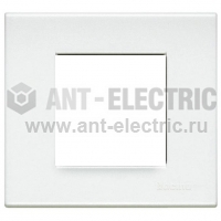 Описание: Накладка на 2 модуля Цвет: светлый белый. Посты: 1. Модульность: 2. Размер: 80,0?.80,0 мм. Материал - полимерный пластик.
