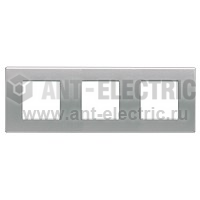 Описание: Рамка Материал - металл. Предназначена для вертикальной и горизонтальной установки. Межосевое расстояние 71 мм. Цвет: алюминий. Посты: 3 Модульность: 6. Размер: 80,0?230,0 мм.