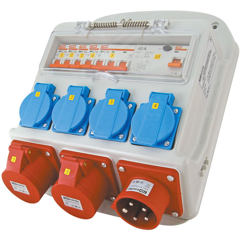 Выход: 4 розетки РП10-3 2P+PE 16 A 250 В~, 1 розетка 415 3P+PE+N 16 A 380 В~, 1 розетка 425 3P+PE+N 32 A 380 В~
