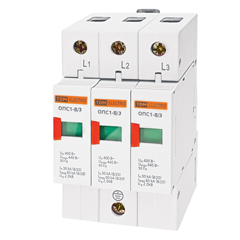На лицевой панели ограничителя ОПС1 реализован визуальный указатель «износа» сменного защитного модуля.