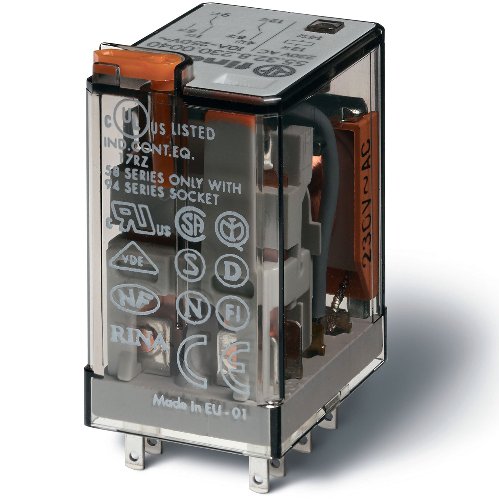 Реле электромеханическое универсальное миниатюрное, монтаж в розетку, 2CO 10A, контакты AgNi, катушка 24В DC, степень защиты RTI, опции: кнопка тест + мех.индикатор