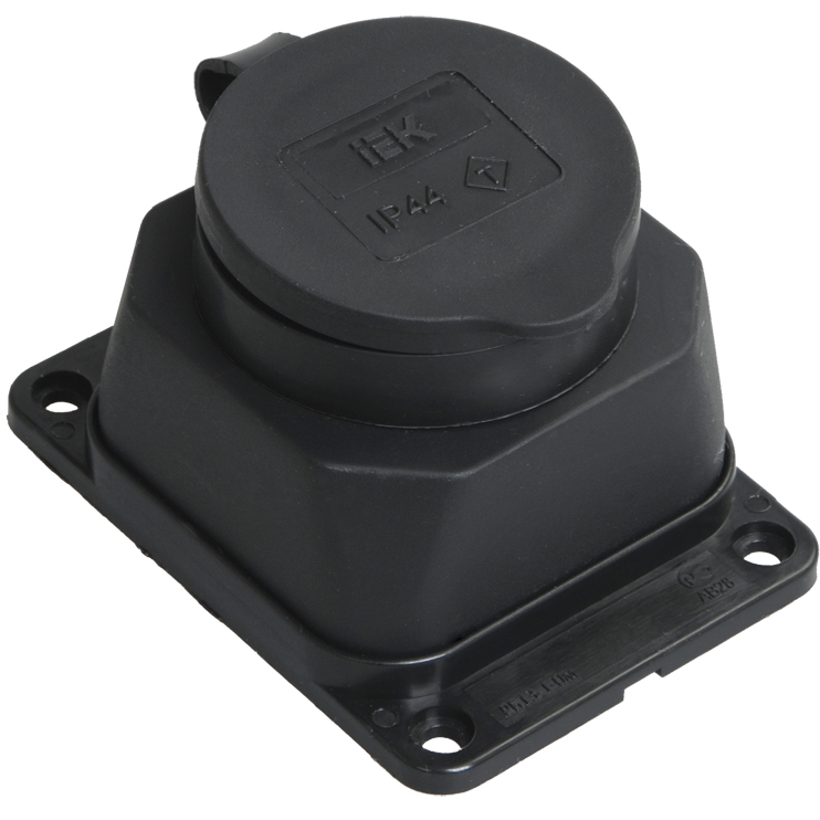 Розетка стационарная 1-местная с защитной крышкой с заземлением IP44 черная каучуковая