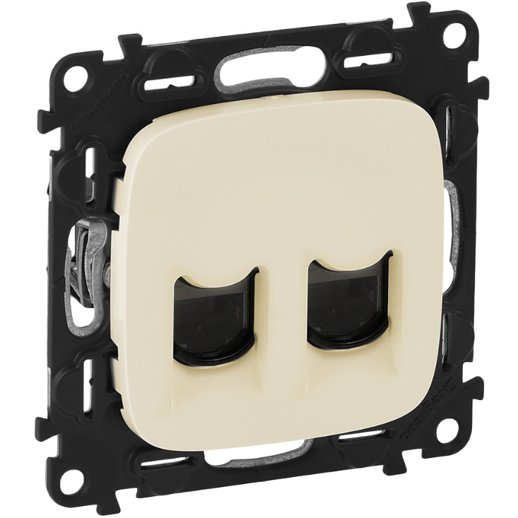 Розетка Валена Аллюр компьютерная информационная для локальных сетей 2-ая двойная RJ45 UTP не экранированная категория 5e (5е), слоновая кость (кремовая, бежевая)