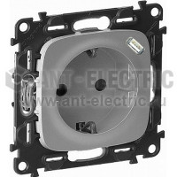 Розетка 2К+З 16А 250В~ + USB C 1.5А 5В Valena Allure (алюминий)