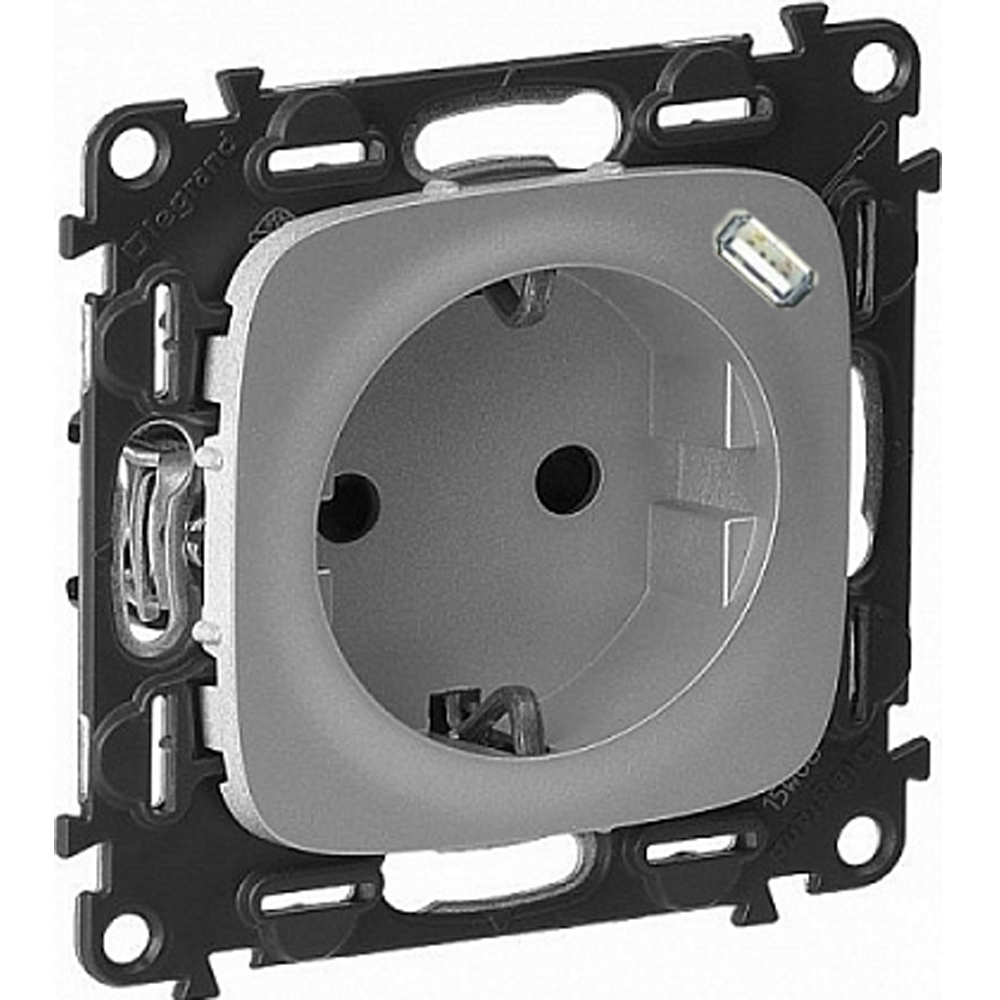 Розетка комбинированная 2К+З 16А ~250В со встроенным зарядным устройством USB C 1.5А 5В.С лицевой панелью.Алюминий