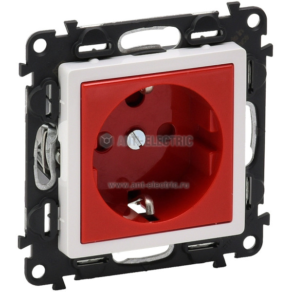 Розетка 2К+З Valena Life 16А 250В~, защ. шт. безвинт. зажимы, с мех. блок. (красная) (кратно 5 шт)