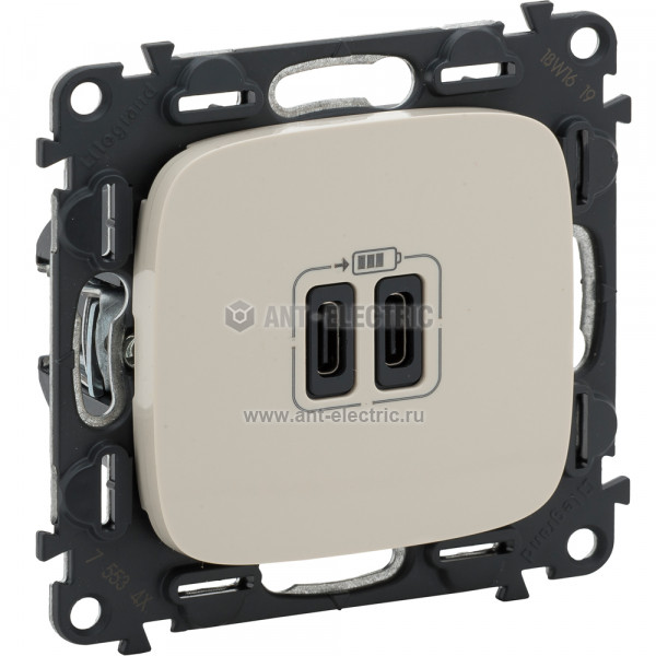 Розетка 2xUSB тип C-тип С 240В/5В 3000мА Valena Allure (бежевая, кремовая)