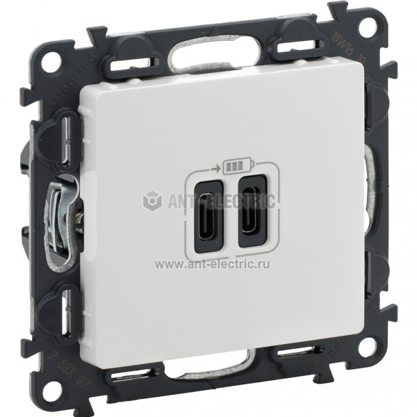 Розетка 2xUSB тип С-тип С 240В/5В 3000мА Valena Life (белая) Артикул: