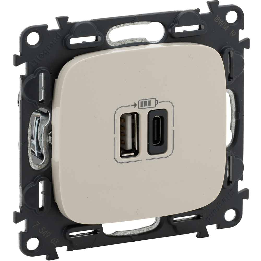 Розетка 2xUSB тип A-тип С 240В/5В 3000мА Valena Allure (бежевая, кремовая)