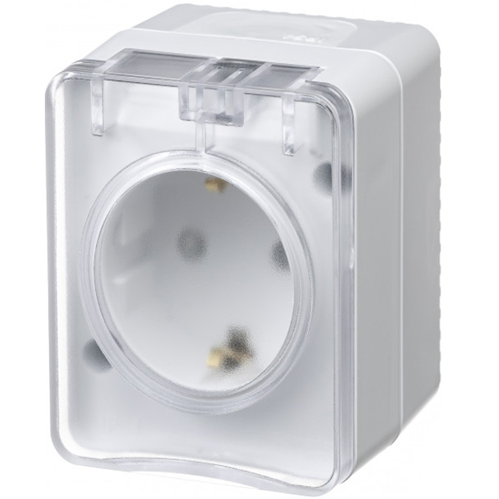 Розетка с/з, со шторками 16А Наруж. IP54 (белый) AtlasDesign Profi54