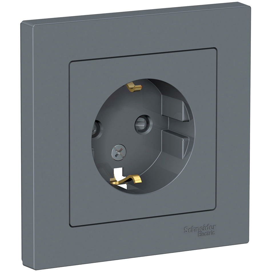 Розетка ATLASDESIGN с заземлением со шторками 16А в сборе грифель (ATN000744)