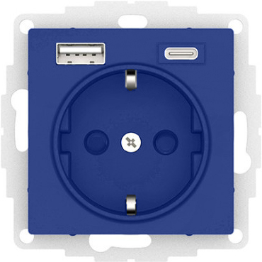 Розетка AtlasDesign SO + USB A+C, 5В/2,4А/3 А, 2х5В/1,5А, механизм, Аквамарин (ATN000132)