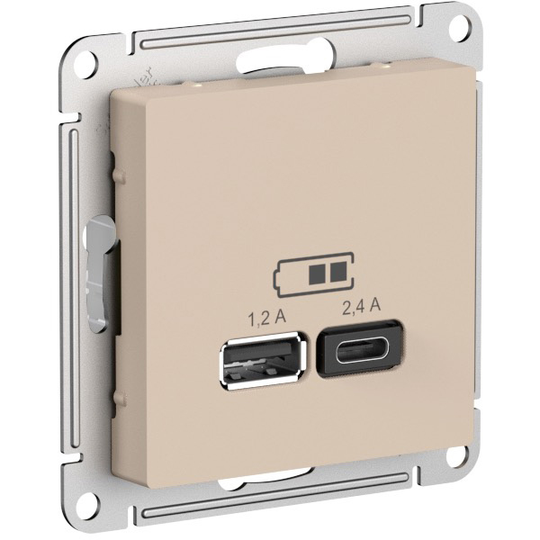 ATLASDESIGN USB РОЗЕТКА A+С, 5В/2,4А, 2х5В/1,2А, механизм, ПЕСОЧНЫЙ