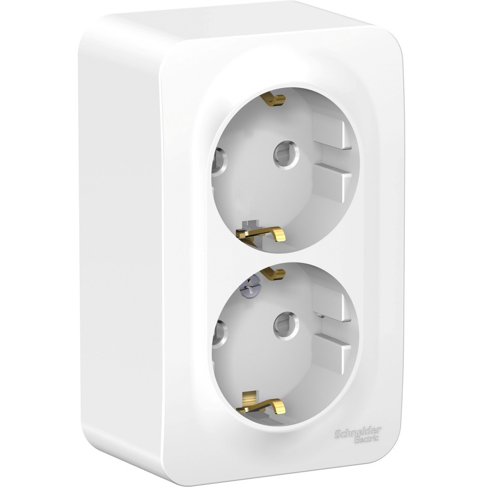 Розетка BLANCA наружная двойная, с заземлением, со шторками, с изолирующей пластиной, 16А, 250В, белый