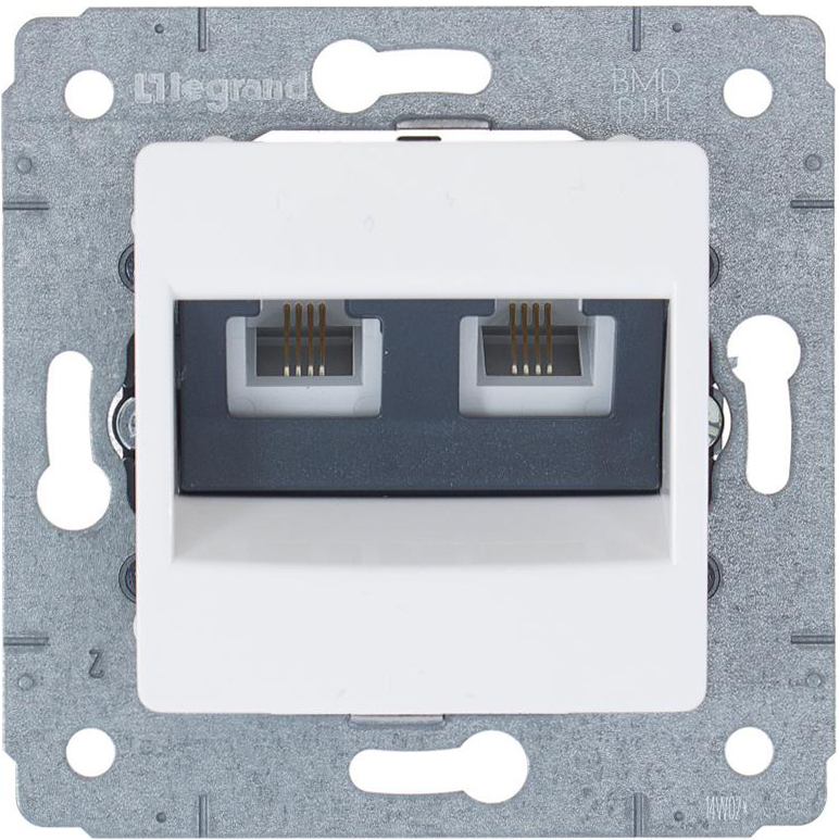 Механизм розетки телефонной 2 входа, 4 контакта, скрытой проводки, белый