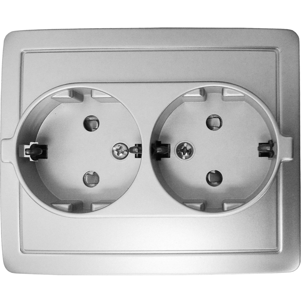 Simon 15 Алюминий Розетка двойная с заземлением 2*2Р+Е, с защитными шторками,винт.зажим,16А, 250В