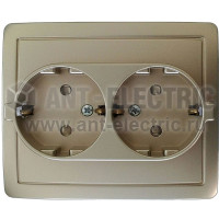 Розетка двойная с заземлением и шторками Schuko 2x2Р+Е 16A 250В~ моноблок цвета шампань S15 Артикул:
