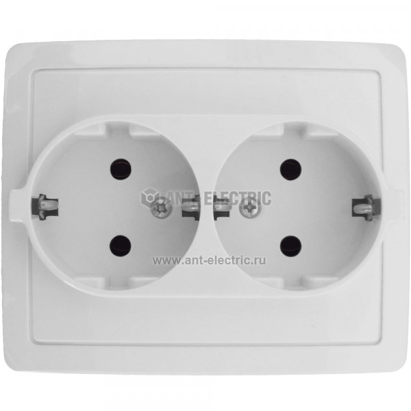 Розетка двойная с заземлением Schuko 2x2Р+Е 16A 250В~ моноблок белого цвета S15