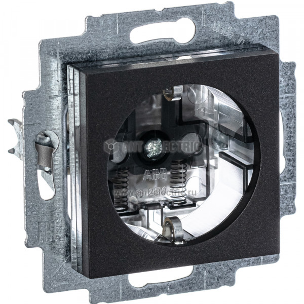 Механизм розетки электрической с защитными шторками Левит антрацит / дымчатый чёрный