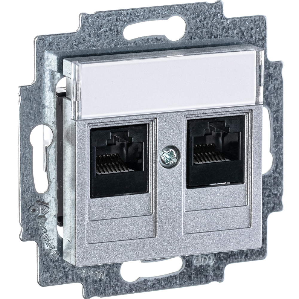 Розетка интернет EPJ Levit RJ45 двойная категория 5e белая информационная компьютерная для локальных сетей 1-ая одинарная одиночная категория 5e (5е), серебряного цвета предназначена для подключения интернета