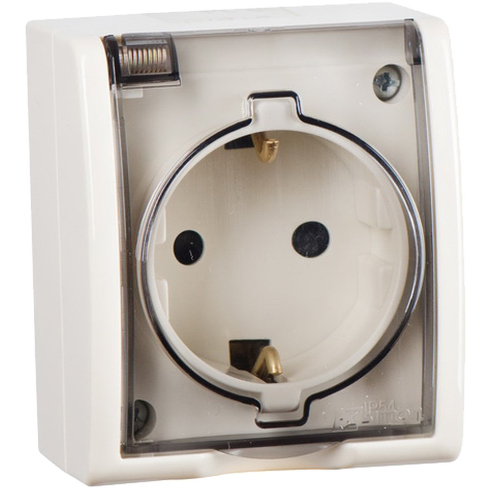 Simon15 Aqua Розетка 2Р+Е Schuko со шторками с крышкой полупр. IP54 16А 250В винтовой зажим S15A сл. кость (1594432-031)