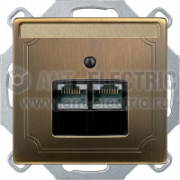 Розетка Merten Antique компьютерная информационная для локальных сетей (интернета) 2-ая двойная RJ45 экранированная категория 6,античная латунь