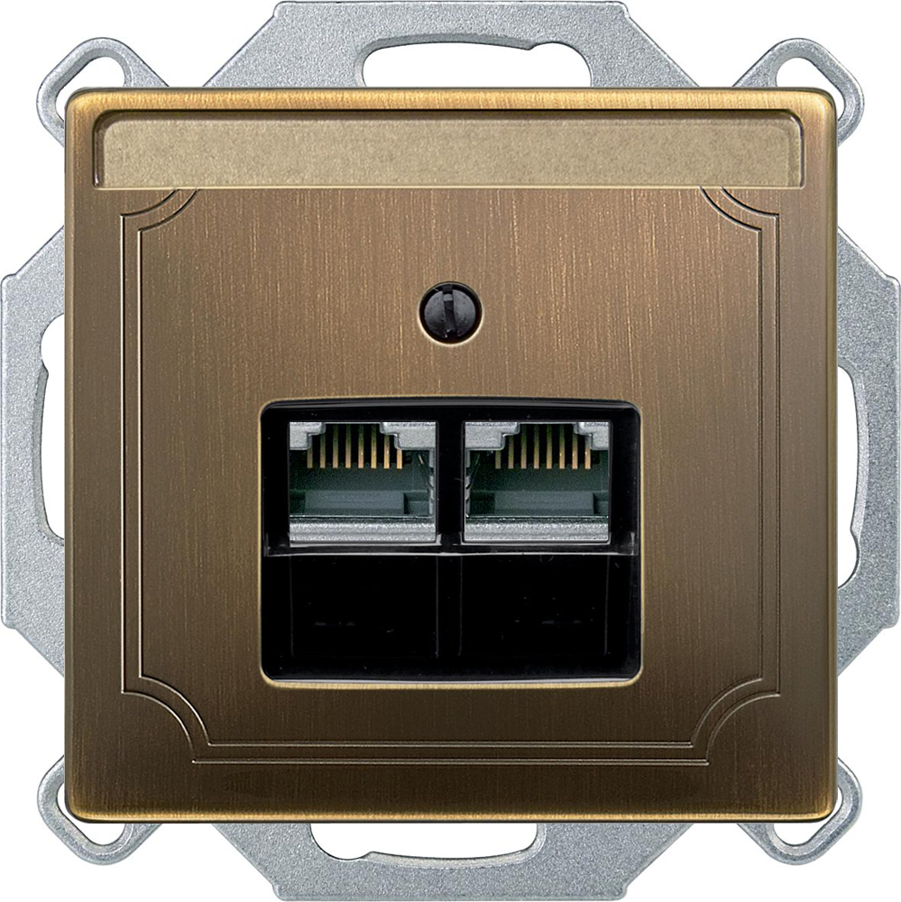 Розетка Merten Antique компьютерная информационная для локальных сетей (интернета) 2-ая двойная RJ45 экранированная категория 6,античная латунь