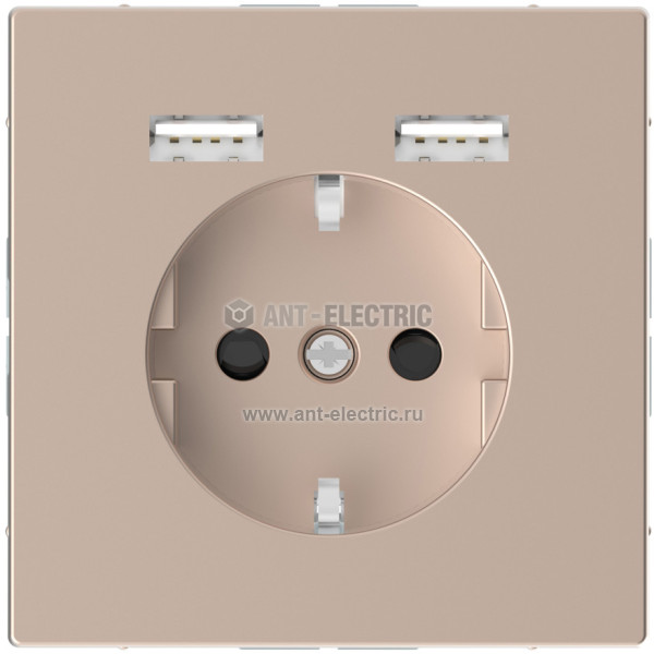 Розетка Merten D-Life 1-ая с/з с 2 USB c зарядным устройством 2,4 A (шампань)