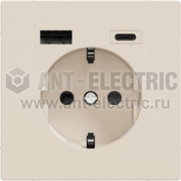 Розетка Merten D-Life 1-ая с/з с c зарядным устройством USB A+C 3 A (бежевая)