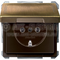 Розетка Merten SD Antique 1-ая с/з с крышкой, безвинт.зажим, термопласт 2К+З SHUKO с/з немецкий стандарт в рамку античная латунь